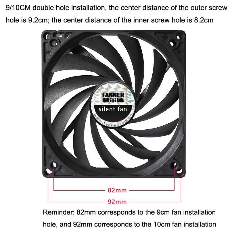 9. Reminder: 82mm corresponds to the 9cm fan installation hole, and 92mm corresponds to the 10cm fan installation hole