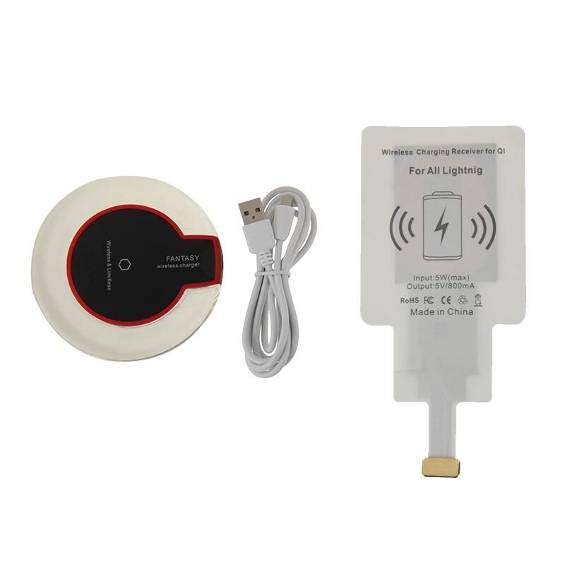 Ασύρματος Φορτιστής FANTASY & Δέκτης Ασύρματης Φόρτισης 8Pin, Για iPhone 6 Plus / 6 / 5S / 5C / 5 (Μαύρο)