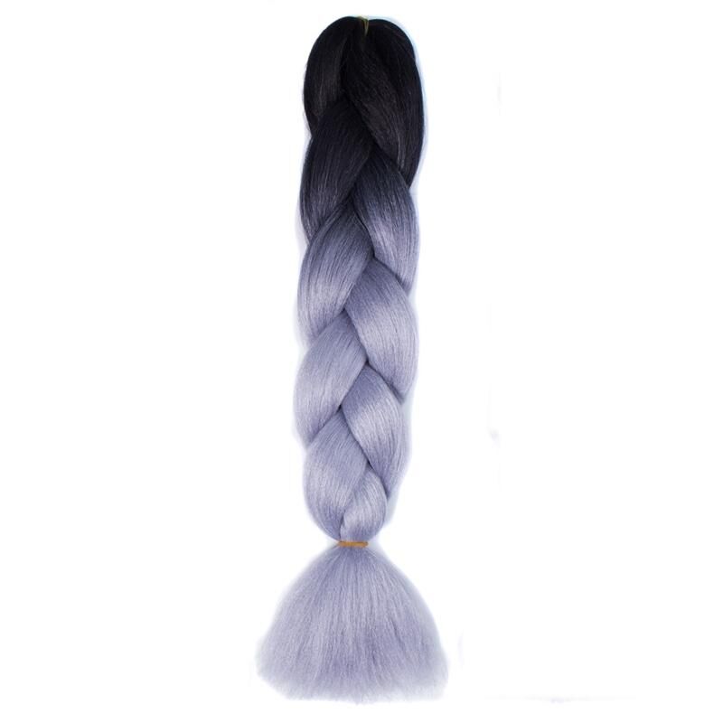 Μόδα Χρώμα διαβάθμιση ατομική πλεξούδα περούκες Χημικές ίνες μεγάλες πλεξούδες, Μήκος: 60cm (15Μαύρο + ασημένιο γκρι)