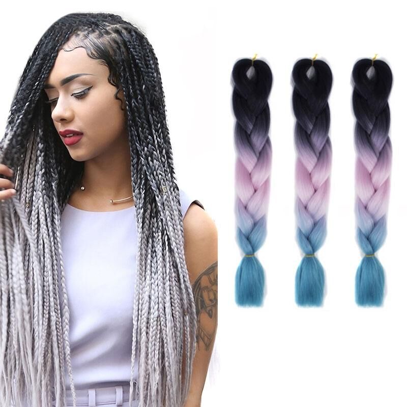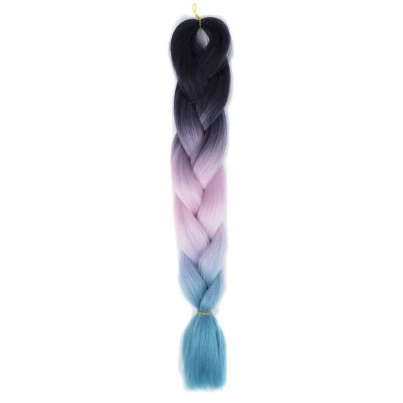 Μόδα Χρώμα διαβάθμιση ατομική πλεξούδα περούκες Χημικές ίνες μεγάλες πλεξούδες, Μήκος: 60cm (28Μαύρο+Ροζ+Μπλε λίμνη)