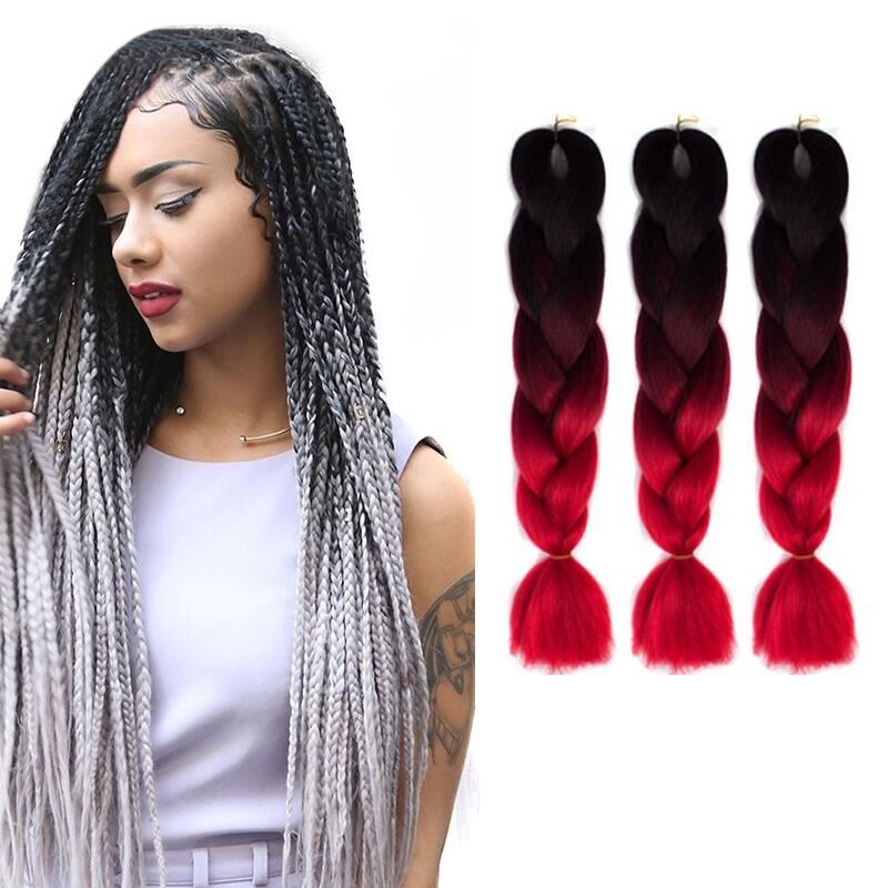 Fashion Color Gradient Individual Braid Wigs Chemical Fiber Big Braids, Length: 60cm(45 Black+Wine Red+Red)