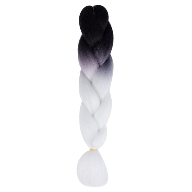 Μόδα Χρώμα διαβάθμιση ατομική πλεξούδα περούκες Χημικές ίνες μεγάλες πλεξούδες, Μήκος: 60cm (54Μαύρο + Λευκό)