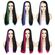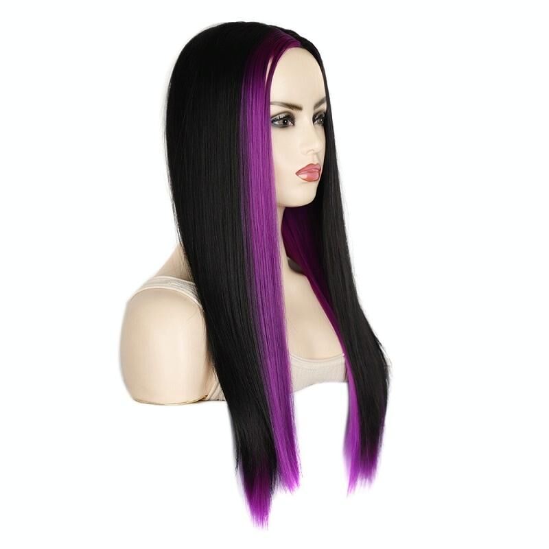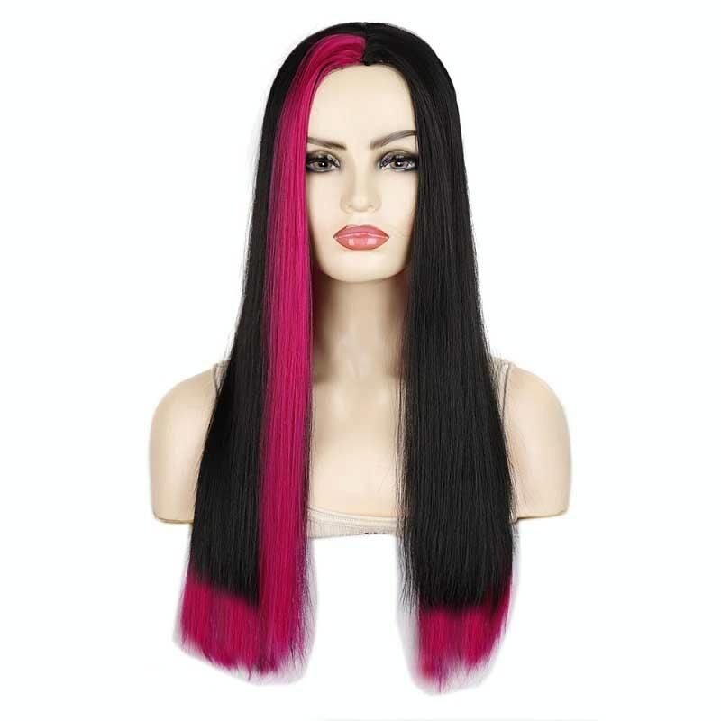 Fashion Medium Haircut Side Bangs Highlight Color Long Straight Wig(Black Rose Red)