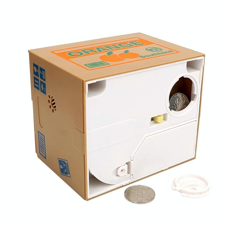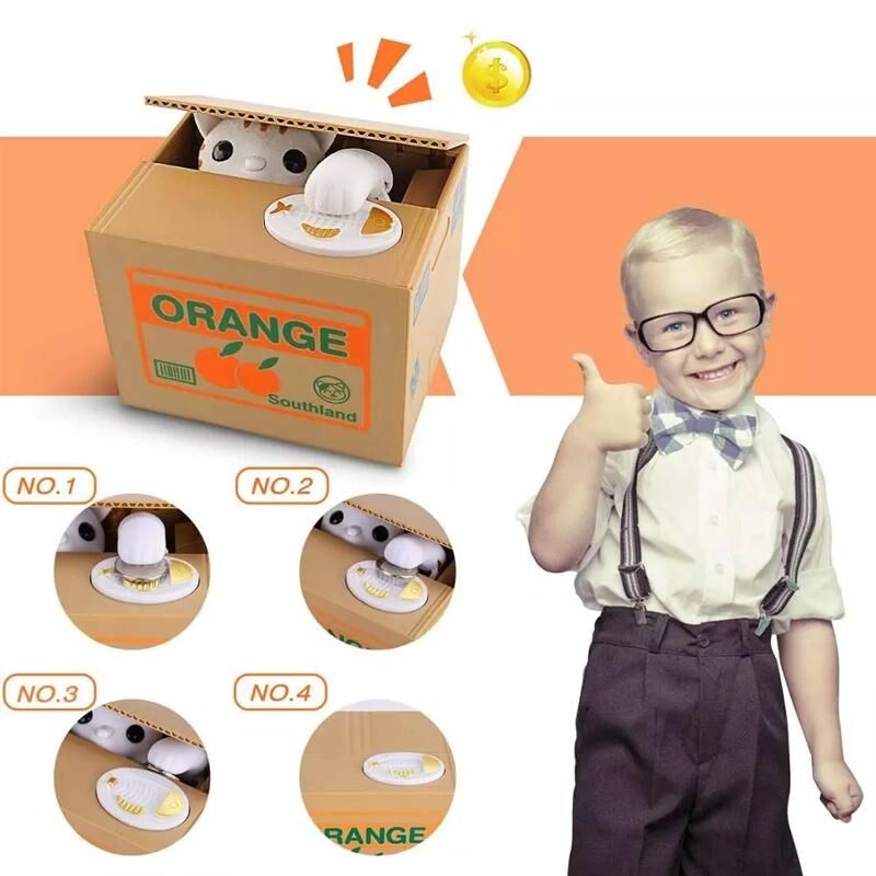 6. Χαρακτηριστικά: Βάλτε το κέρμα στην λευκή επιφάνεια πάνω στο κουτί και η γάτα που είναι κρυμμένη μέσα θα το πάρει! Πολύ χαριτωμένο!