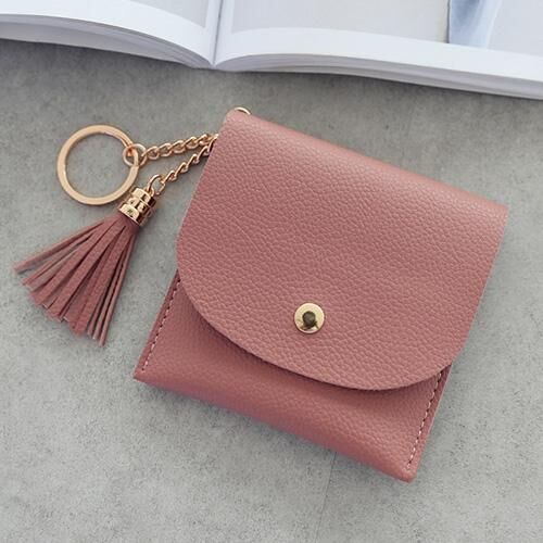 Fashion Women Wallet Short Leather Mini Casual ID Card Holders Bags Ladies Coin Clutch Tassel Bag(Dark Pink)