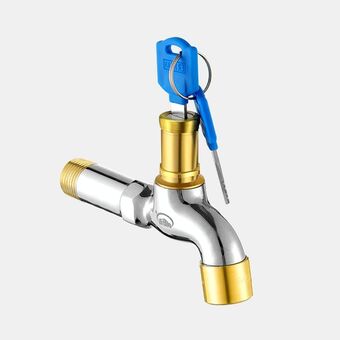 Οικιακή βρύση με κλειδαριά Εξωτερική αντικλεπτική βρύση 4 λεπτών, 规格: Κλειδί Όλα χαλκού μακρύ στόμιο πλυντηρίου