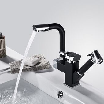 Κουζίνα Pull-Out Double Faucet Water Table Hot and Cold Water Faucet, Προδιαγραφές: Πούλμαν με ψεκασμό κύβου