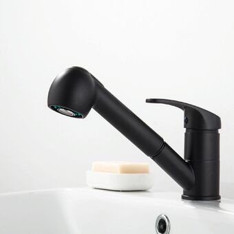 Κουζίνα Pull-out βρύση ζεστό και κρύο σπίτι 304 από ανοξείδωτο χάλυβα αναδιπλούμενη περιστρεφόμενη στρόφιγγα, στυλ: ανοξείδωτο χάλυβα μαύρο