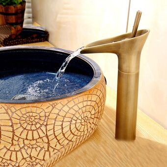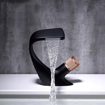 Basin Waterfall Type Hot & Cold Water All-Copper Faucet Bathroom Sanitary Ware (Black Gold)
