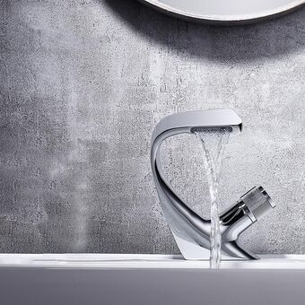 Basin Waterfall Type Hot & Cold Water All-Copper Faucet Bathroom Sanitary Ware (Electroplating Silver)