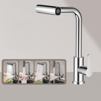 Non-pull-out Version 4 Modes Waterfall Kitchen Faucet Single Hole Hot/Cold Water Mixer Tap for Sink Silver