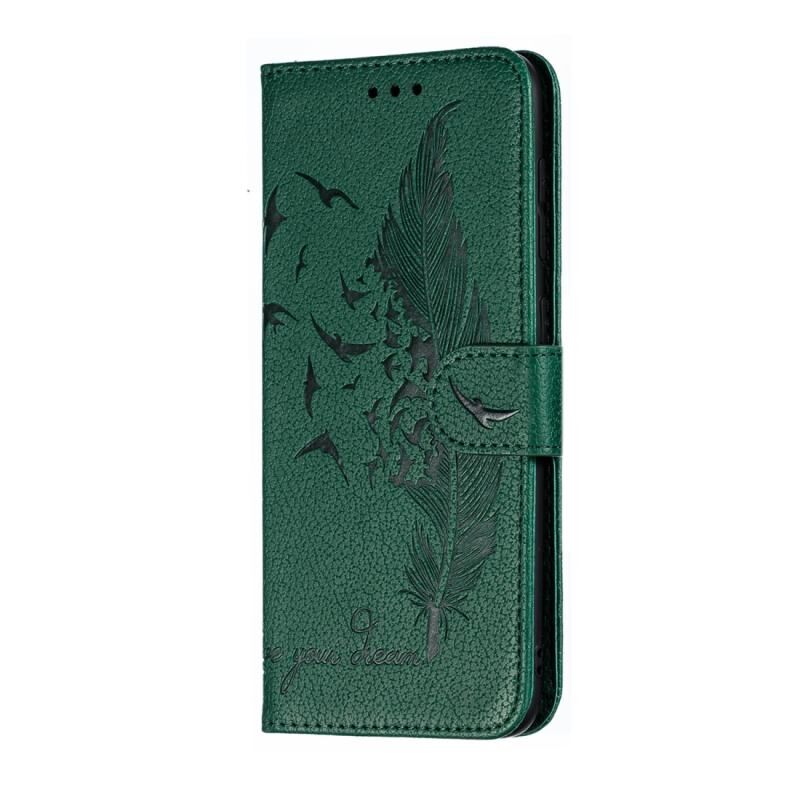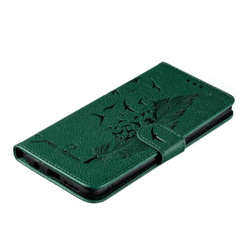 Φτερό μοτίβο Litchi υφή οριζόντια Flip δερμάτινη θήκη με πορτοφόλι & κάτοχος & υποδοχές καρτών για Galaxy A30 / A20 (πράσινο)