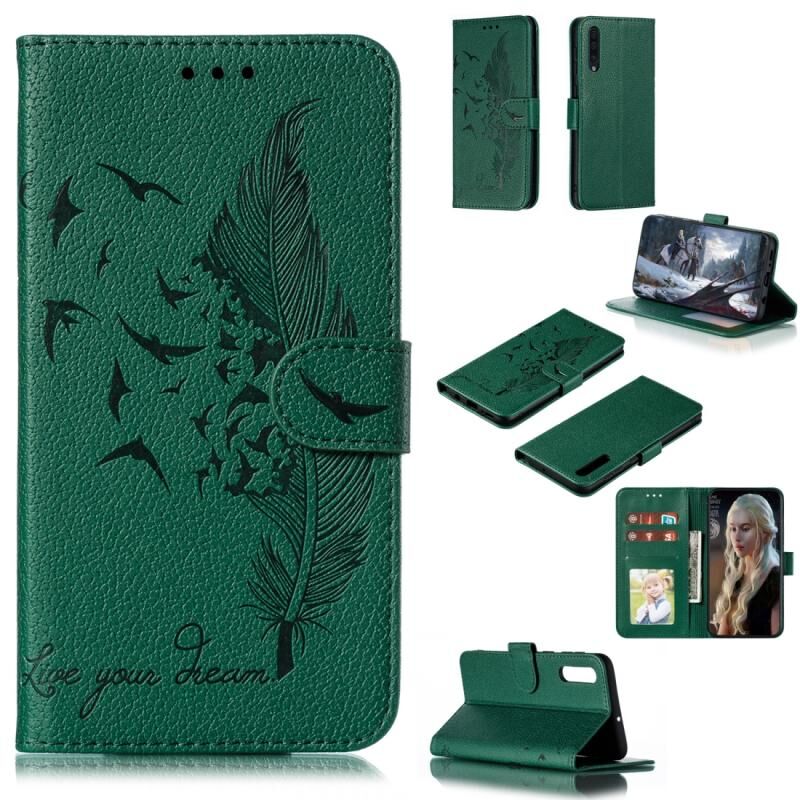 Φτερό μοτίβο Litchi υφή οριζόντια Flip δερμάτινη θήκη με πορτοφόλι & κάτοχος & υποδοχές καρτών για Galaxy A50 (πράσινο)
