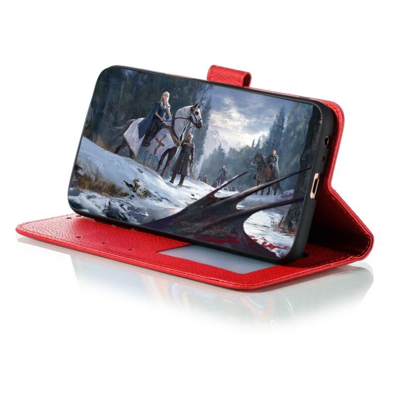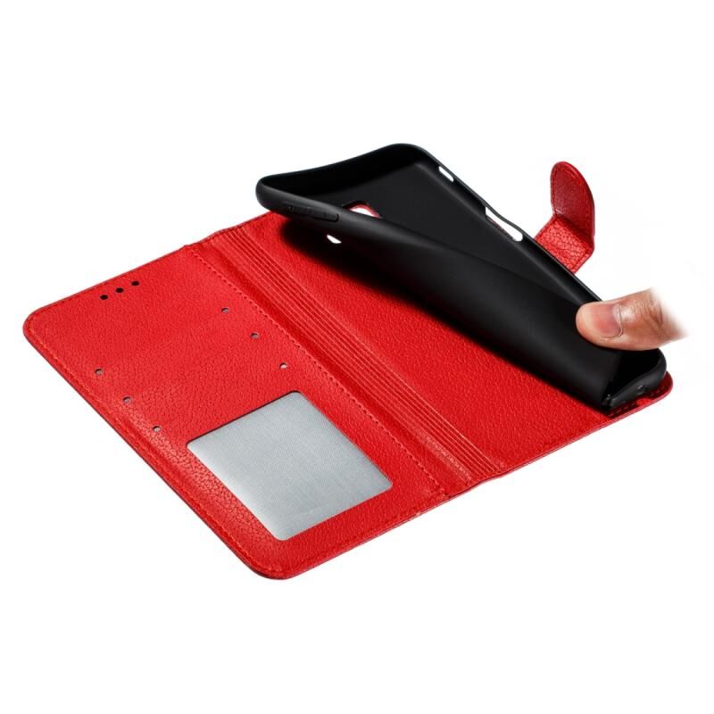 Φτερό μοτίβο Litchi υφή οριζόντια Flip δερμάτινη θήκη με πορτοφόλι & κάτοχος & υποδοχές καρτών για Galaxy J6 + (κόκκινο)