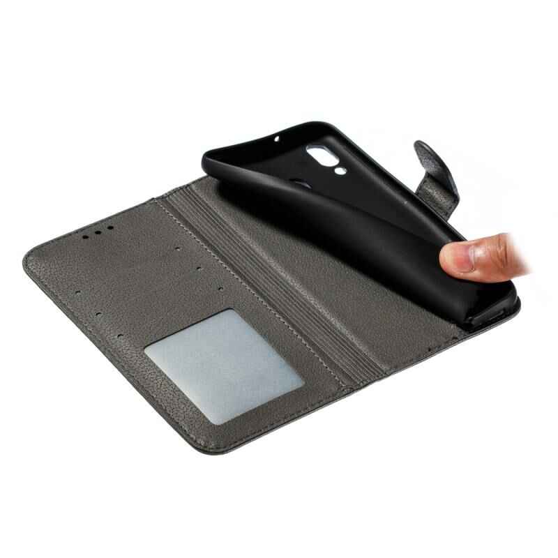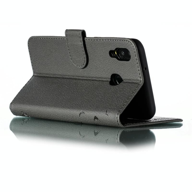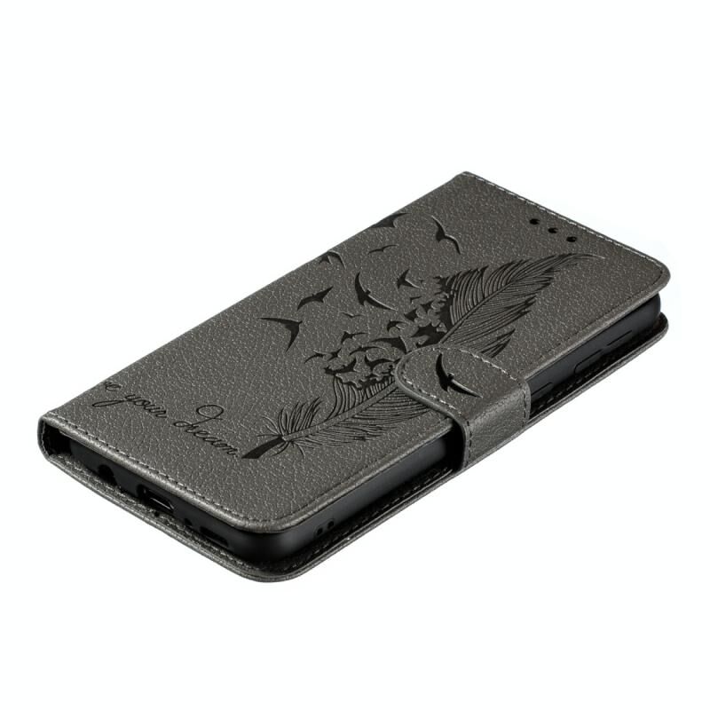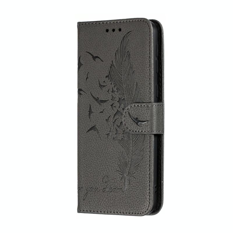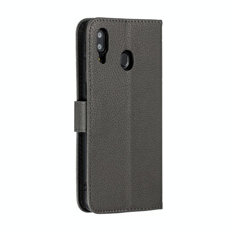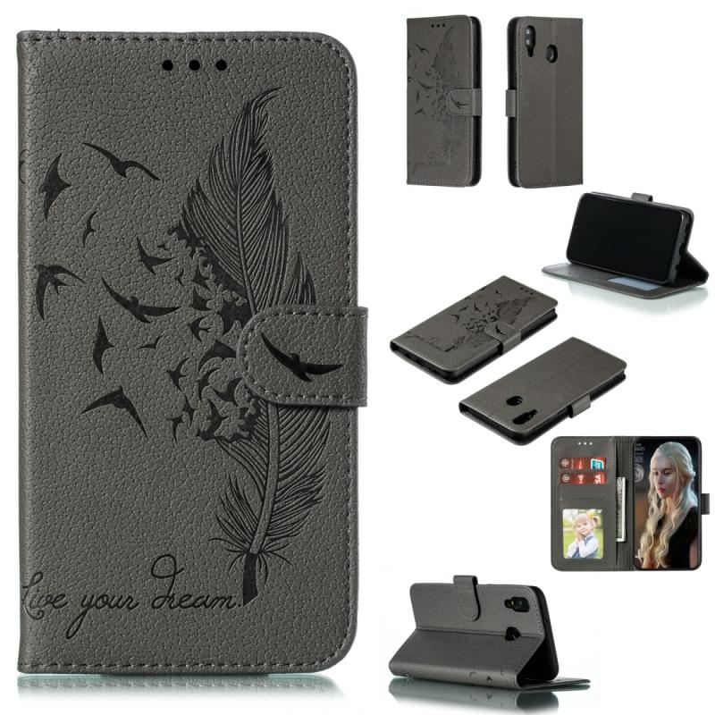 Feather Pattern Litchi Texture Horizontal Flip Leather Case with Wallet & Holder & Card Slots For Galaxy M20(Gray)