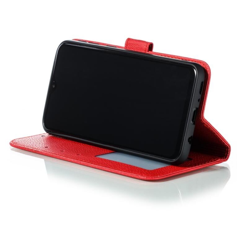 Feather Pattern Litchi Texture Horizontal Flip Leather Case with Wallet & Holder & Card Slots For Galaxy M20(Red)