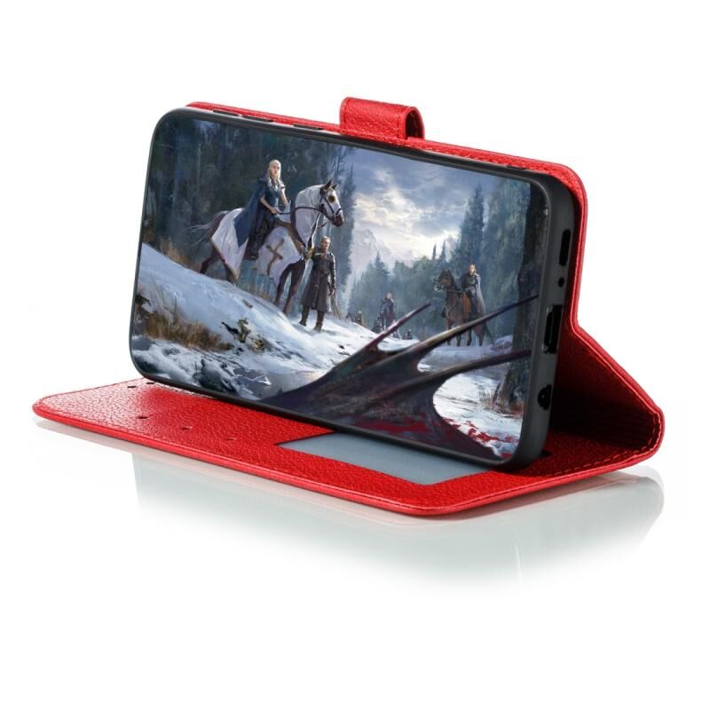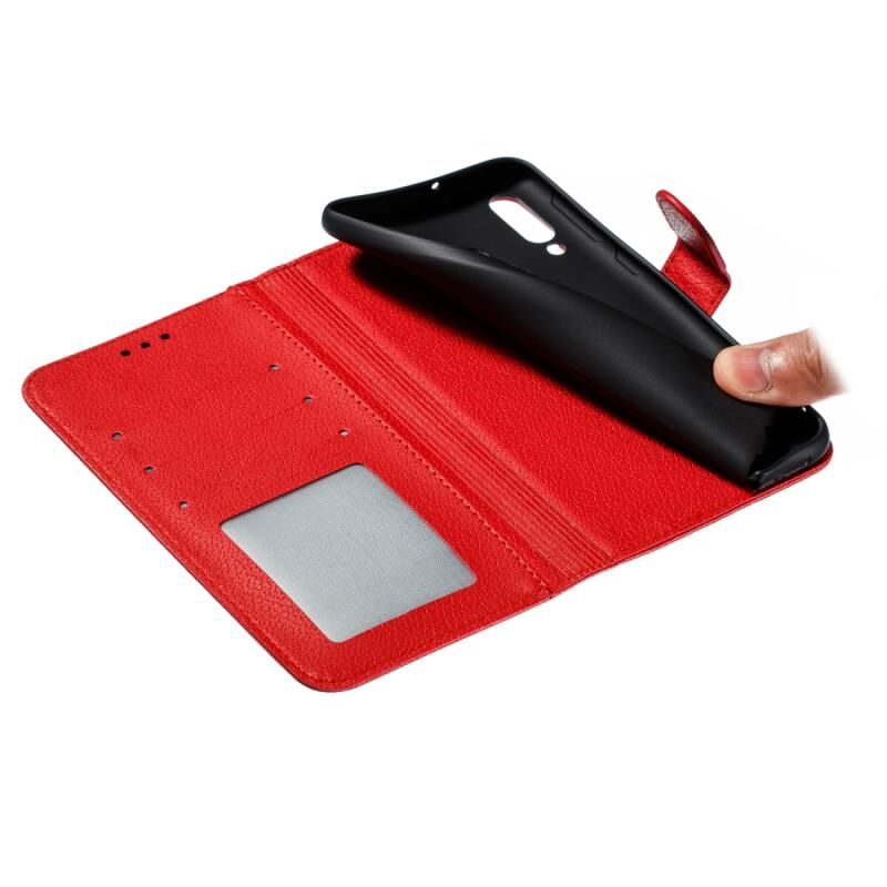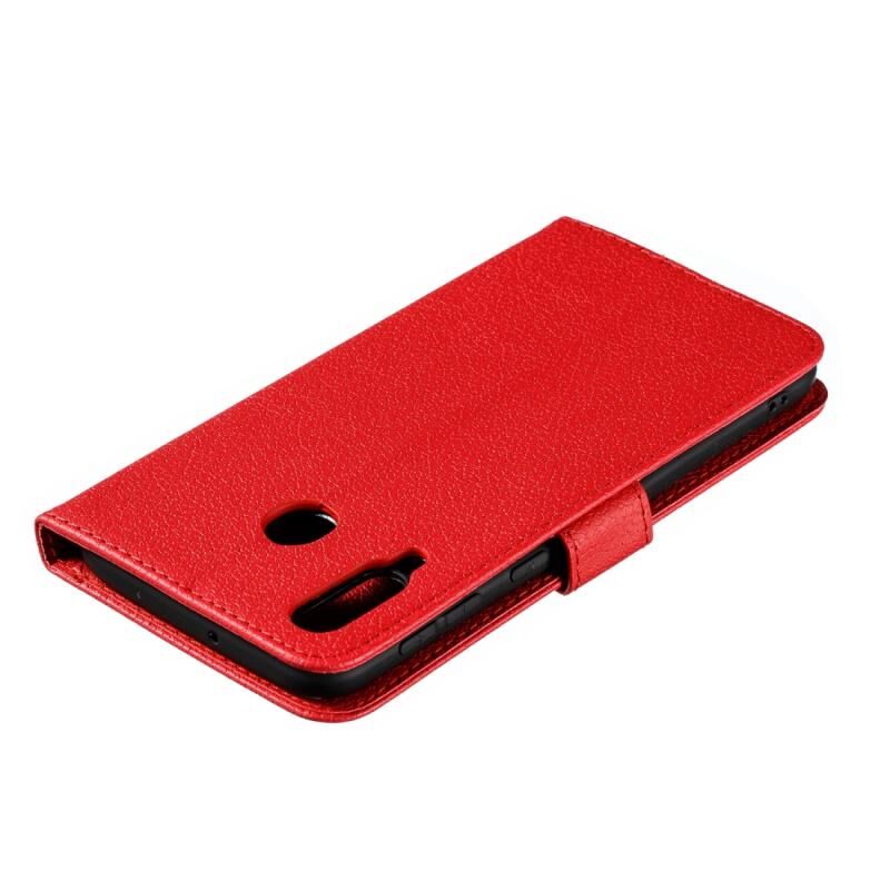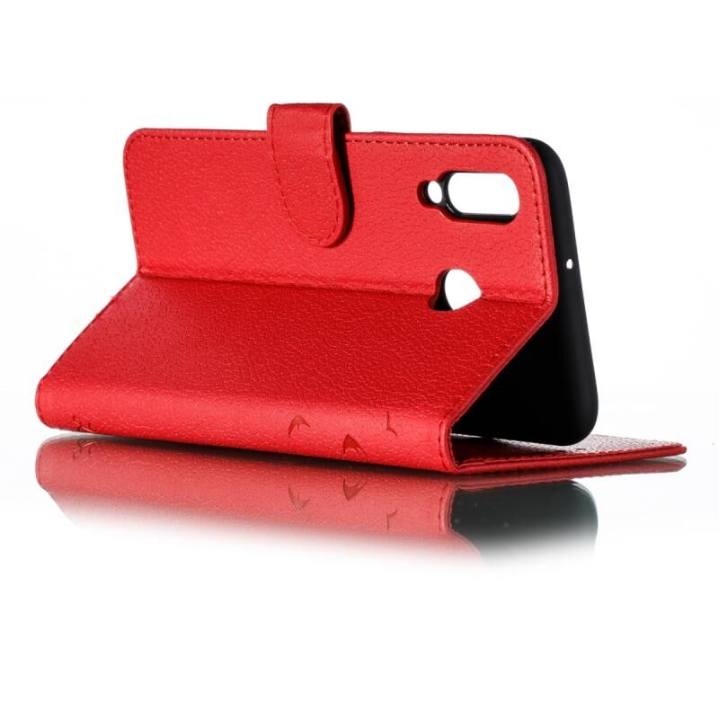 Φτερό μοτίβο Litchi υφή οριζόντια Flip δερμάτινη θήκη με πορτοφόλι & κάτοχος & υποδοχές καρτών για Galaxy M30 (κόκκινο)