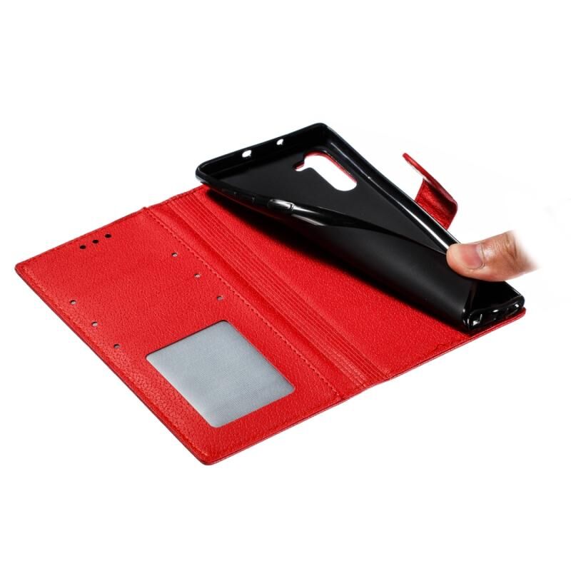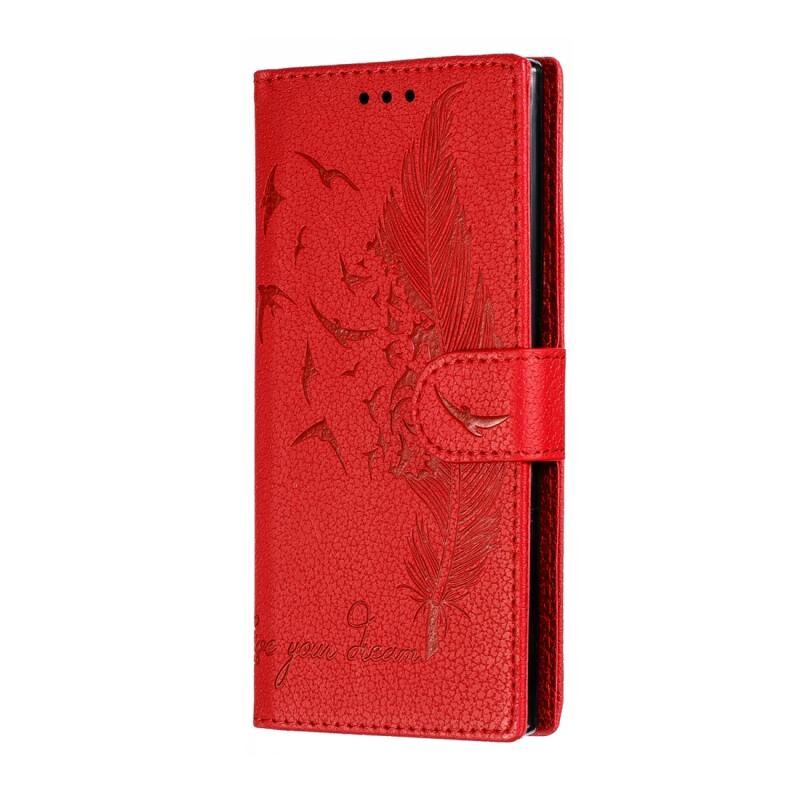 Φτερό μοτίβο Litchi υφή οριζόντια Flip δερμάτινη θήκη με πορτοφόλι & κάτοχος & υποδοχές καρτών για Galaxy Note 10 (κόκκινο)
