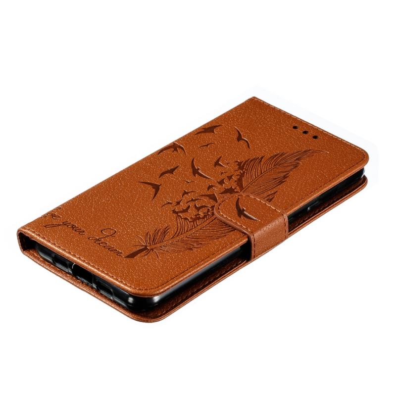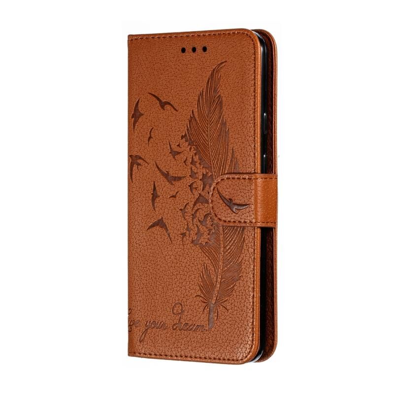 Feather Pattern Litchi Texture Horizontal Flip Leather Case with Wallet & Holder & Card Slots For Google Pixel 3a XL(Brown)