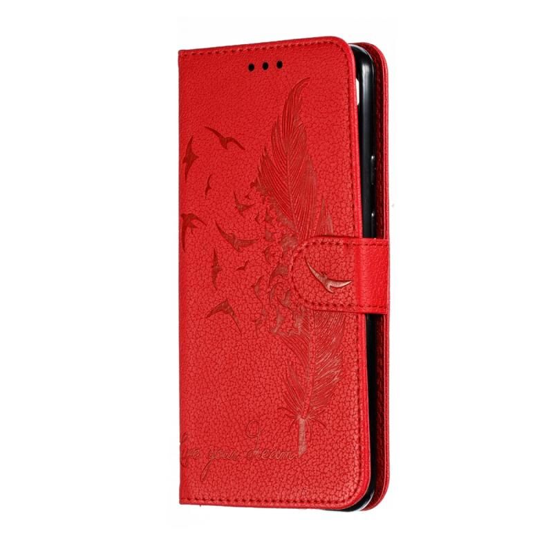 Feather Pattern Litchi Texture Horizontal Flip Leather Case with Wallet & Holder & Card Slots For Google Pixel 3a XL(Red)