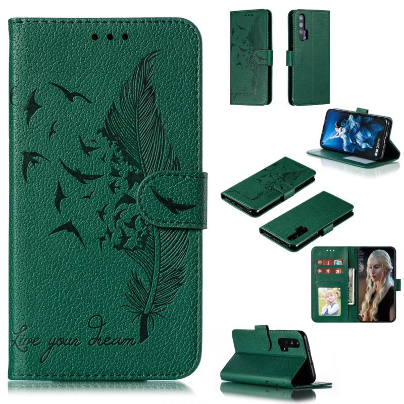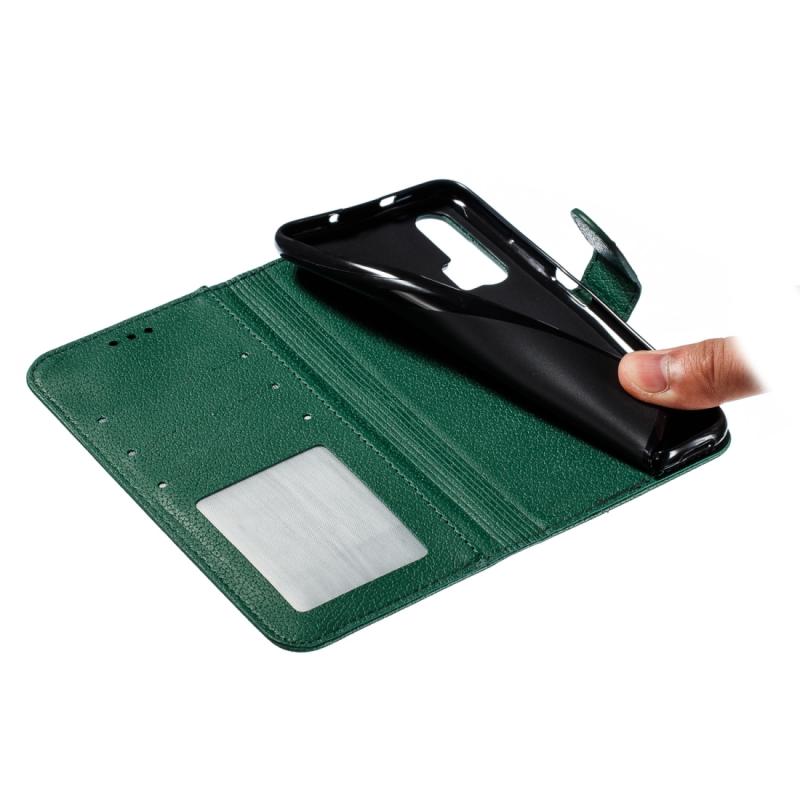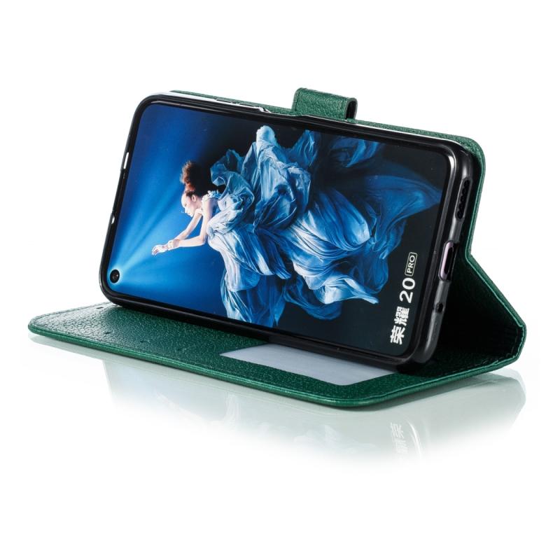 Θήκη βιβρίου με λεπτό σχέδιο, υφή lychee & κάρτες για Huawei Honor 20 Pro (Πράσινο)