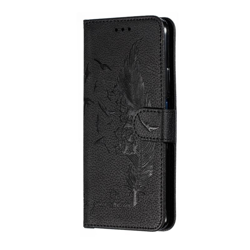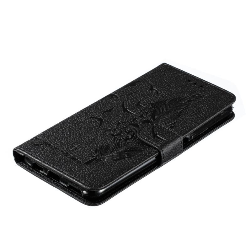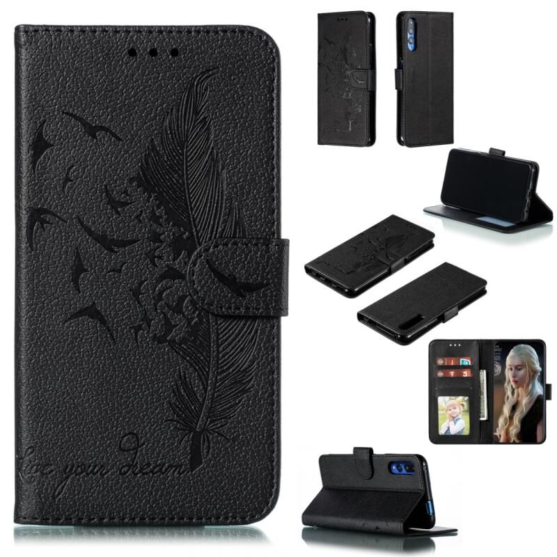 Φτερό μοτίβο Litchi υφή οριζόντια Flip δερμάτινη θήκη με πορτοφόλι & κάτοχος & υποδοχές καρτών για Huawei Honor 9X Pro (Μαύρο)