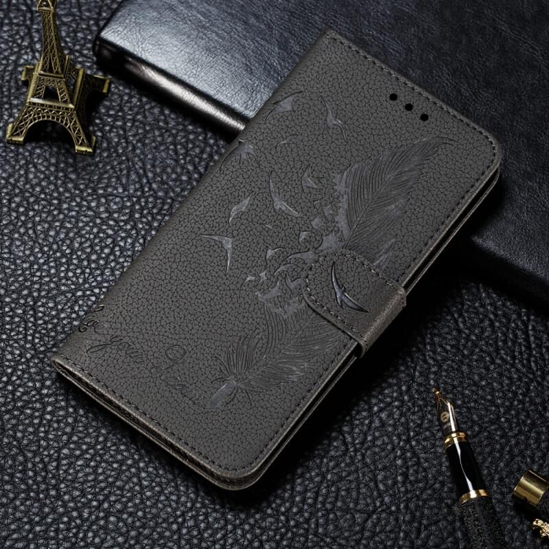 Φτερό μοτίβο Litchi υφή οριζόντια Flip δερμάτινη θήκη με πορτοφόλι & κάτοχος & υποδοχές καρτών για Xiaomi Redmi 7A (γκρι)