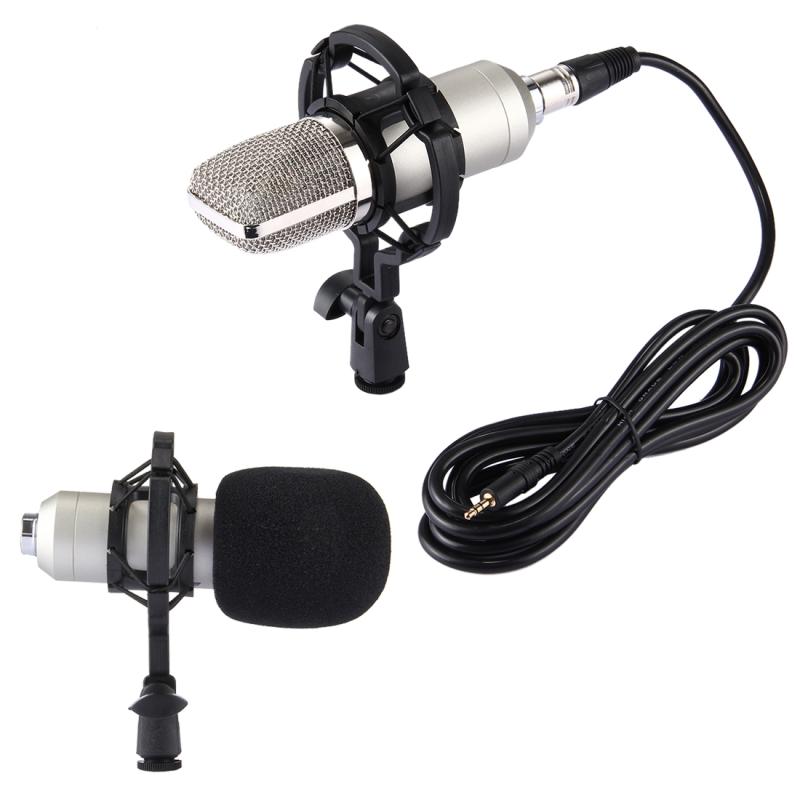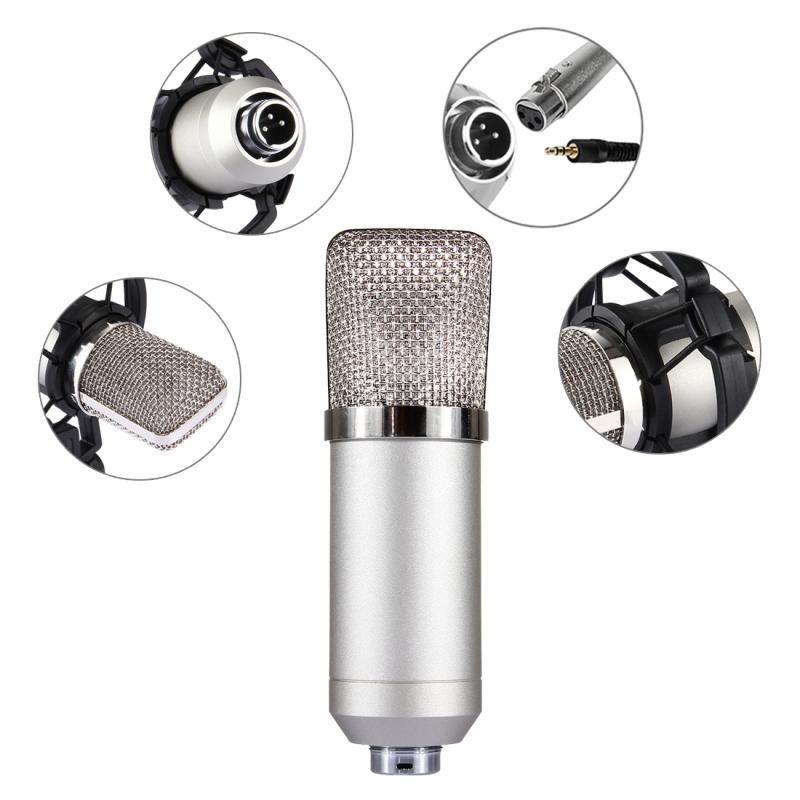 FIFINE F-700 Professional Condenser Sound Recording Microphone with Shock Mount for Studio Radio Broadcasting & Live Boardcast, 3.5mm Earphone Port, Cable Length: 2.5m(Silver)