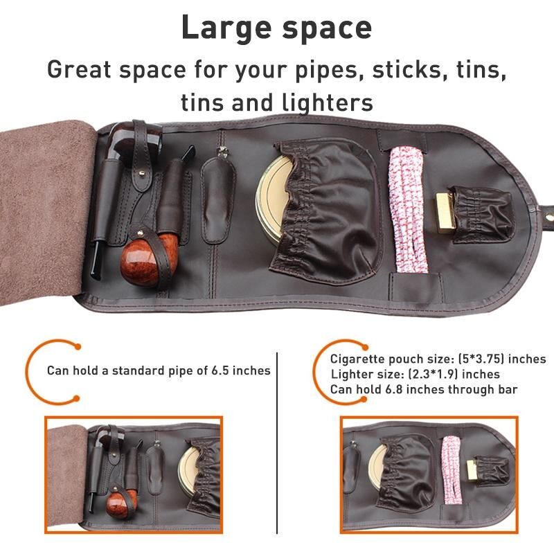 6. The built-in space is large, and the pipe, press rod, tobacco can, cleaning rod and lighter can be placed well.