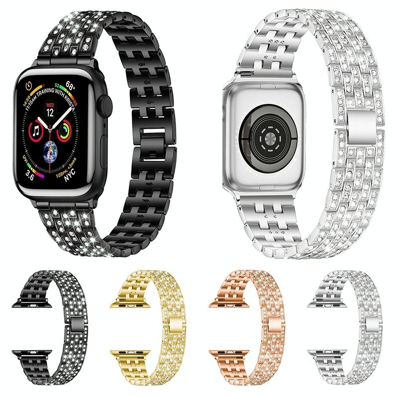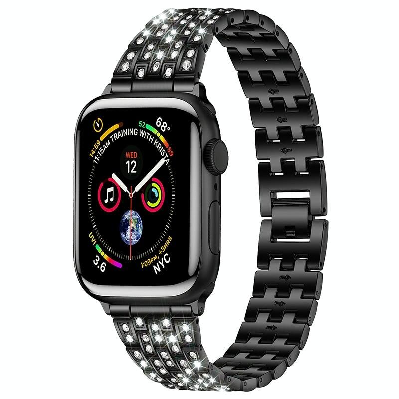 Λουράκι ρολογιού από ατσάλι με πέντε χάντρες για Apple Watch Series 9&8&7 41mm / SE 3&SE 2&6&SE&5&4 40mm / 3&2&1 38mm (Μαύρο)