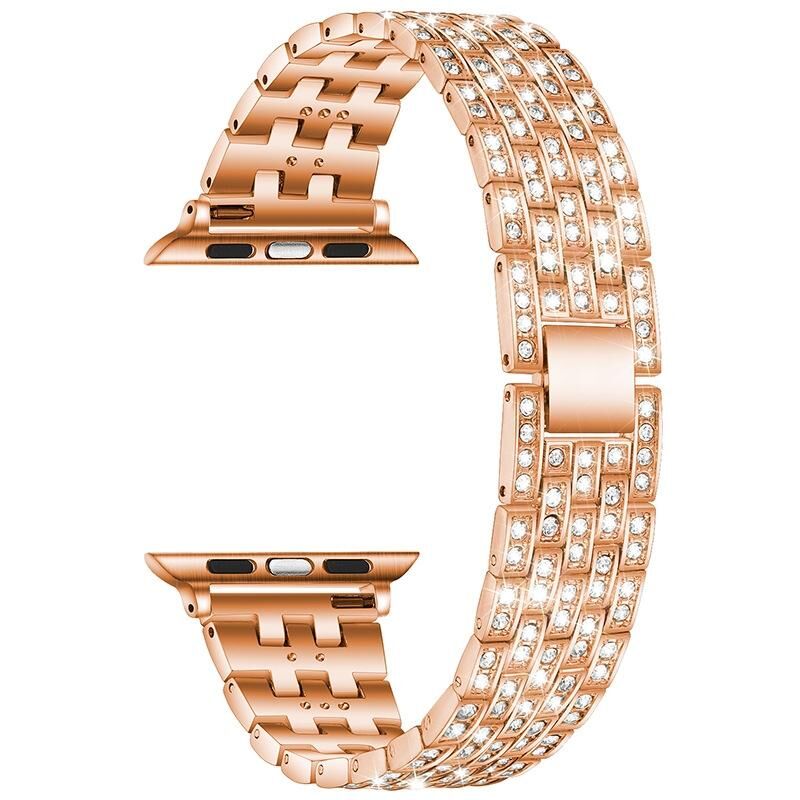 Λουράκι ρολογιού από ατσάλι με πέντε χάντρες για Apple Watch Series 9&8&7 41mm / SE 3&SE 2&6&SE&5&4 40mm / 3&2&1 38mm (Ροζ χρυσός)