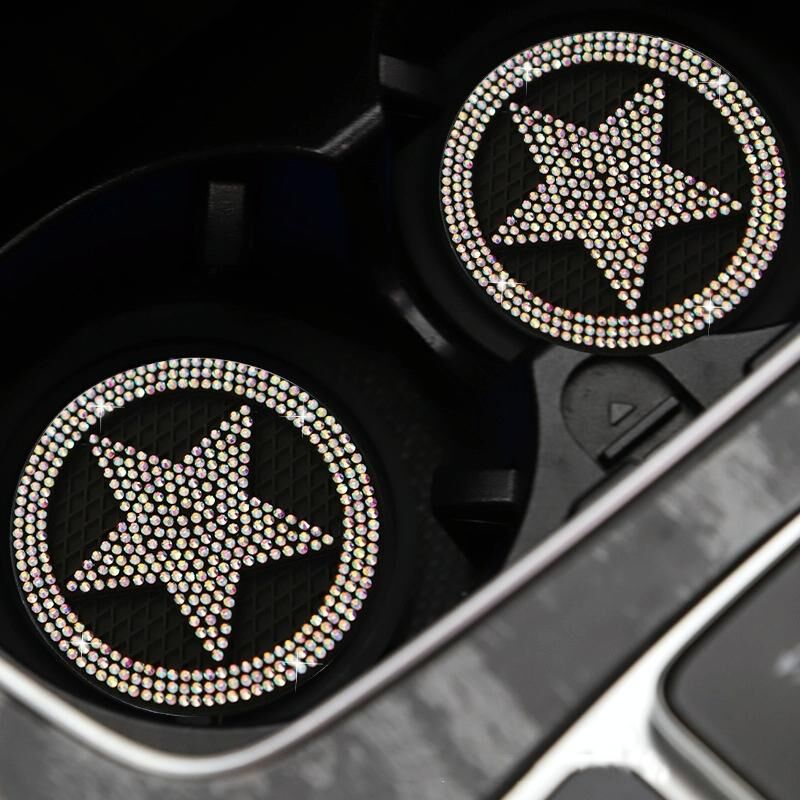 Five-pointed Star Diamond-encrusted Car Non-slip Decorative Water Coaster(Black)
