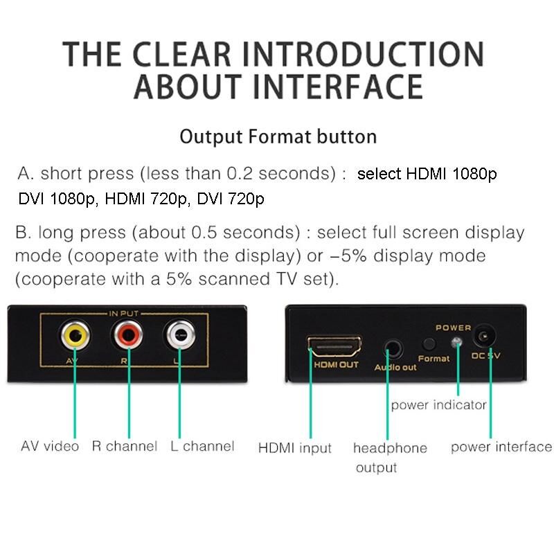 5. AV port device audio and video signals can be converted to HDTV signals, connected to the HDMI interface HD screen equipment