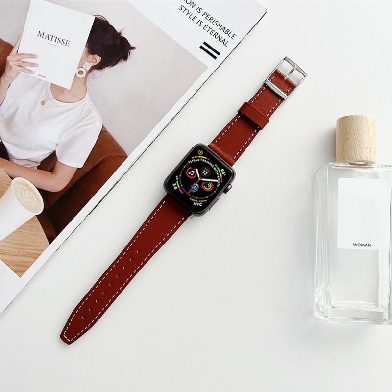 Λουρί Δέρματος με Επίπεδη Υφή για Apple Watch Series 9&8&7 41mm / SE 3&SE 2&6&SE&5&4 40mm / 3&2&1 38mm (Καφέ)