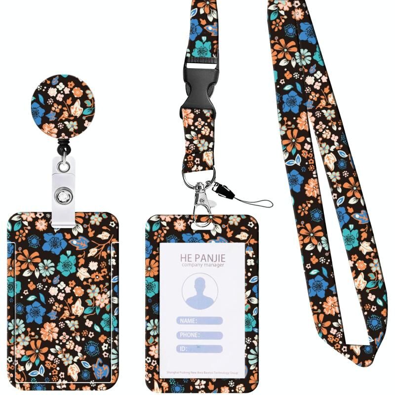 Floral Ρυθμιζόμενο αναδιπλούμενο αναδιπλούμενο κάτοχο κάρτας όνομα Badge Εργασία Τράπεζα Πιστωτική κάρτα μανίκι (μπλε λουλούδι)