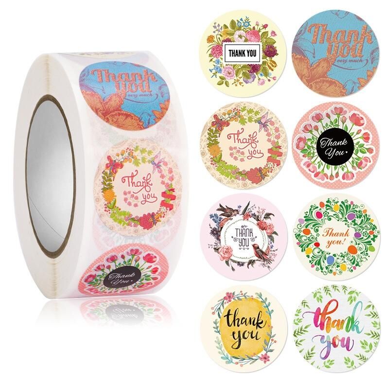 Floral φόντο Ευχαριστώ αυτοκόλλητο αυτοκόλλητο σφραγίδα αυτοκόλλητο, μέγεθος: 2.5cm / 1 ίντσα (HA001)