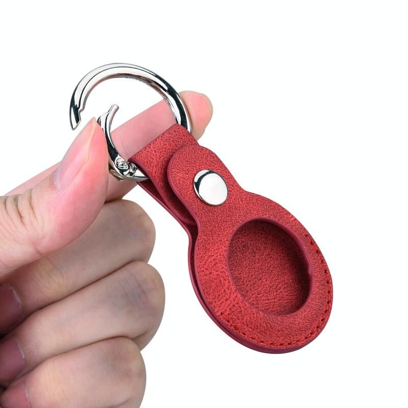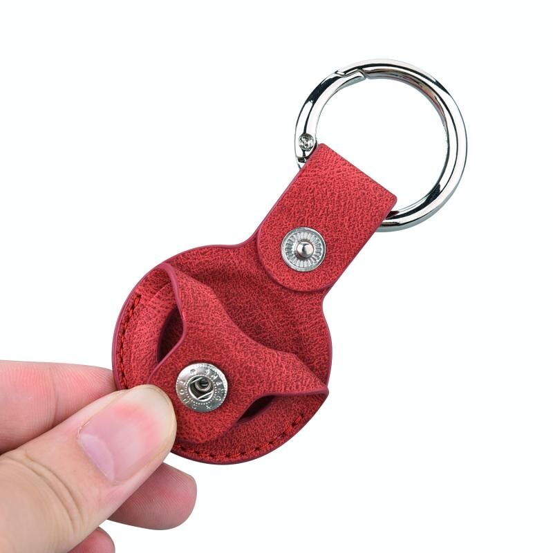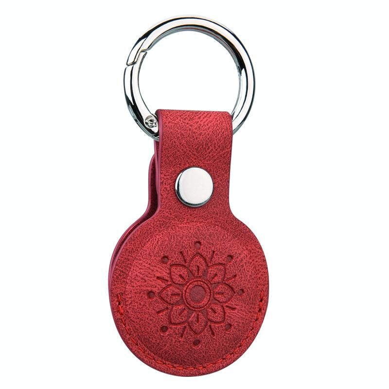 Floral Embossing Leather Protective Case with Key Ring for AirTag(Red)
