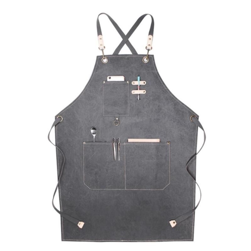 Floral γάλα τσάι ψήσιμο εργασίας ποδιά εργασίας (μαύρο γκρι)