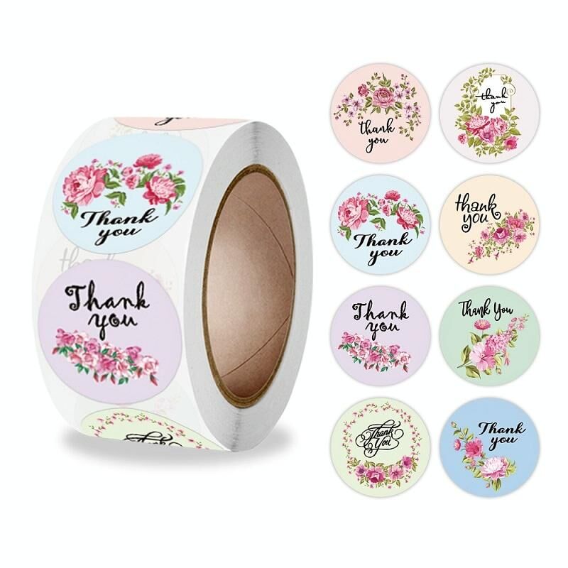 Floral ευχαριστούμε αυτοκόλλητο αυτοκόλλητο σφράγισης φακέλου, μέγεθος: 2.5cm / 1 ίντσα (A-301)