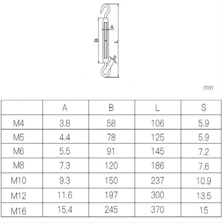 3. Specifications: M4, M5, M6, M8, M10, M12, M14, M16