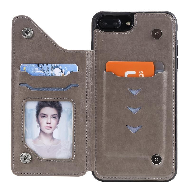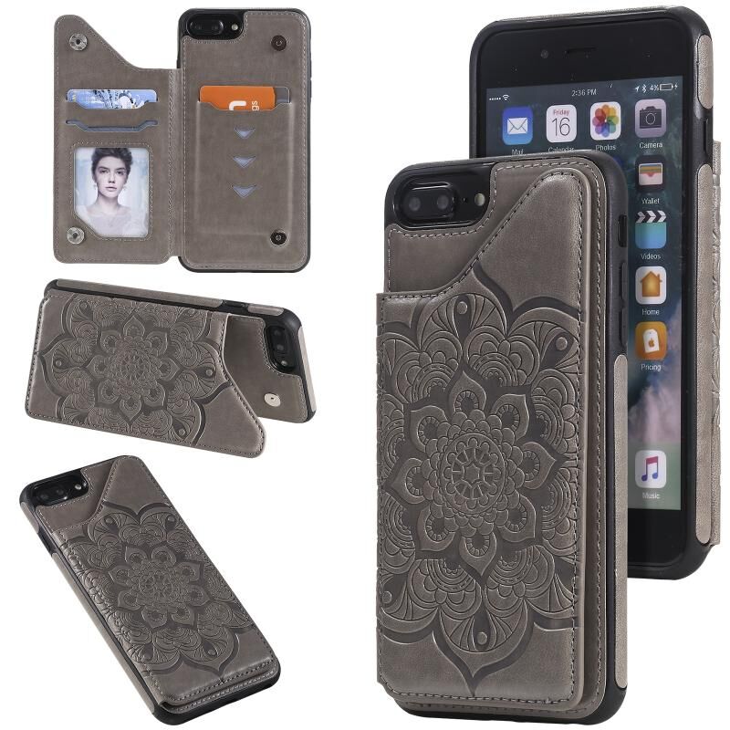 Flower Embossing Pattern Shockproof Protective Case with Holder & Card Slots & Photo Frame For iPhone 8 Plus / 7 Plus(Grey)