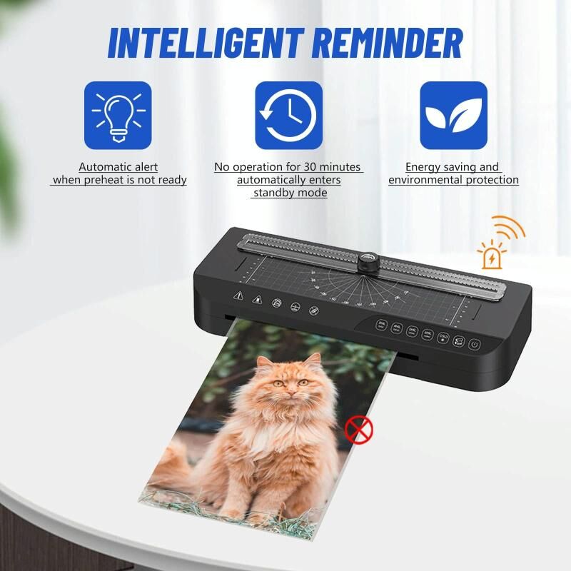 3. With advanced heating system, the preheating time of A4/A5/A6 laminating machine is shortened from 4 minutes to 120 seconds. NOTE: A beep will sound when the machine is not ready to warm up.