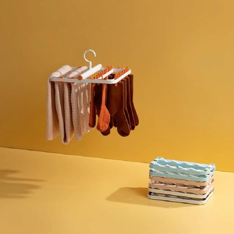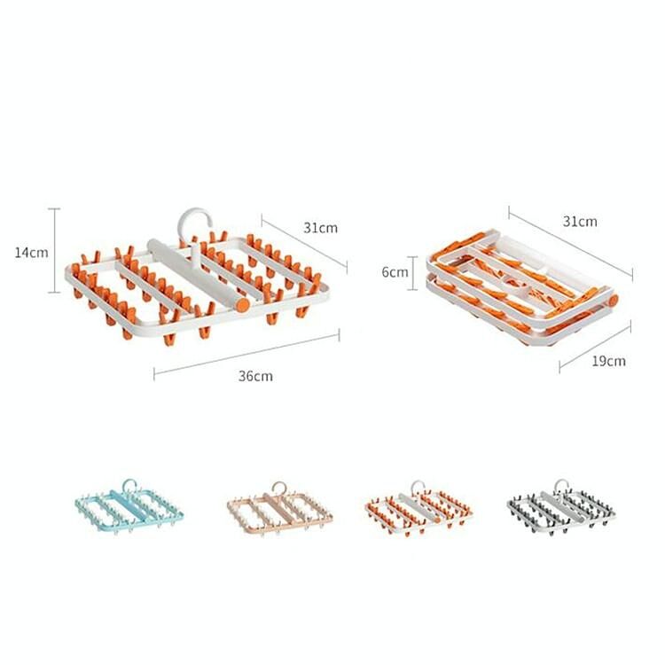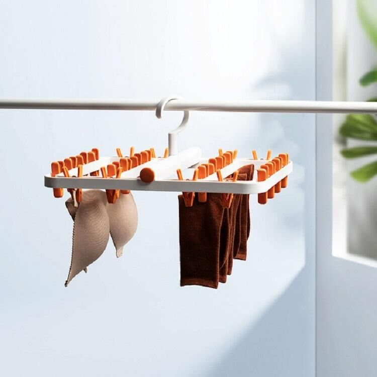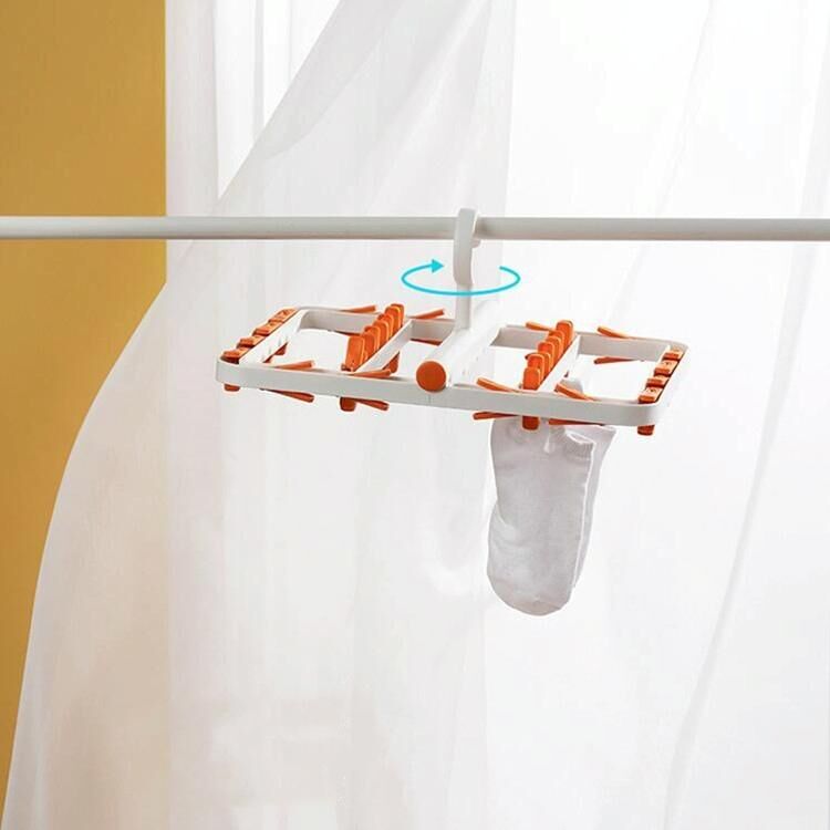 Αναδιπλούμενη Πολυλειτουργική Κρεμάστρα Στεγνώματος για Κάλτσες και Εσώρουχα με Κλιπ (Λευκό Πορτοκαλί)