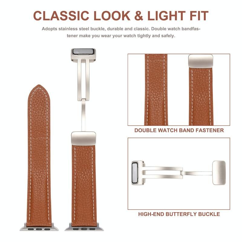 Λουρί ρολογιού από γνήσιο δέρμα με πτυσσόμενη αγκράφα για Apple Watch Ultra 49mm / Series 8&7 45mm / SE 2&6&SE&5&4 44mm / 3&2&1 42mm (Μπεζ)