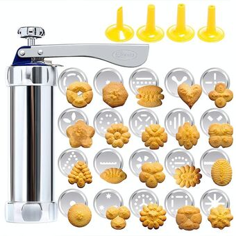 Πολυλειτουργικό Εργαλείο Μηχανής Παρασκευής Μπισκότων και Cookies, Καλούπι Διακόσμησης, Τοποθετούμενο, DIY Μαγειρική με 20 Καλούπια & 4 Ακροφύσια (Ασημί)