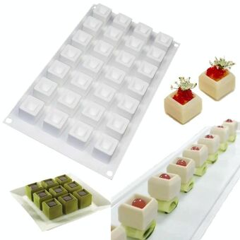 28 κοιλότητες κοίλο χήνα συκώτι μους κέικ μούχλα 3D μικρό τετράγωνο σοκολάτα σιλικόνης καλούπι (λευκό)