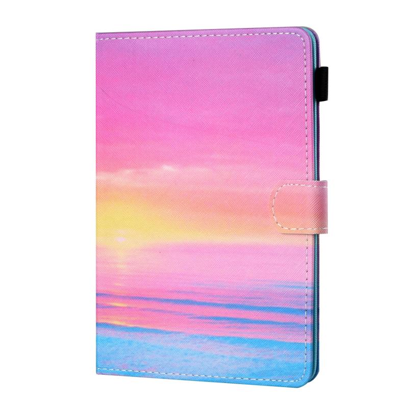 For 10 inch Tablet PC Universal Sewing Thread Horizontal Painted Flat Leather Case with Pen Cover & Anti Skid Strip & Card Slot & Holder(Sunrise)