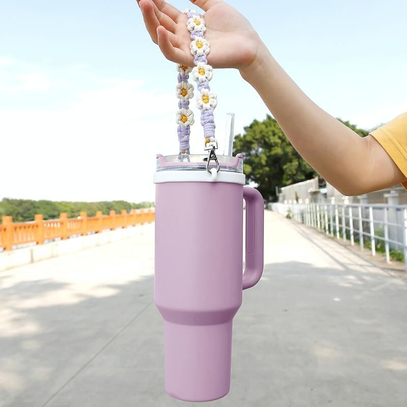 Για 16-40oz Stanley Mug Lanyard σιλικόνης βρόχο σιλικόνης Boho Daisy χαριτωμένο λουλούδι χειροποίητο υφαντό κάλυμμα κούπας (μωβ)