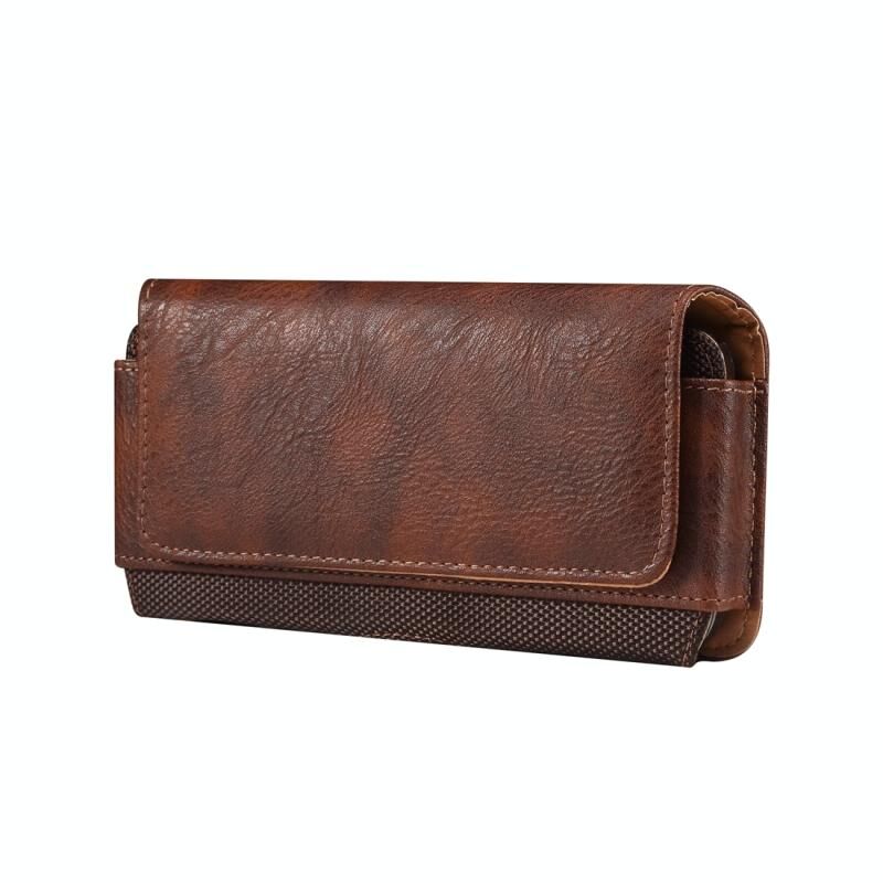 Για 6,1 ιντσών κινητό τηλέφωνο δέρμα αγελάδας υφή Οξφόρδη ύφασμα οριζόντια τσάντα μέσης (καφέ)