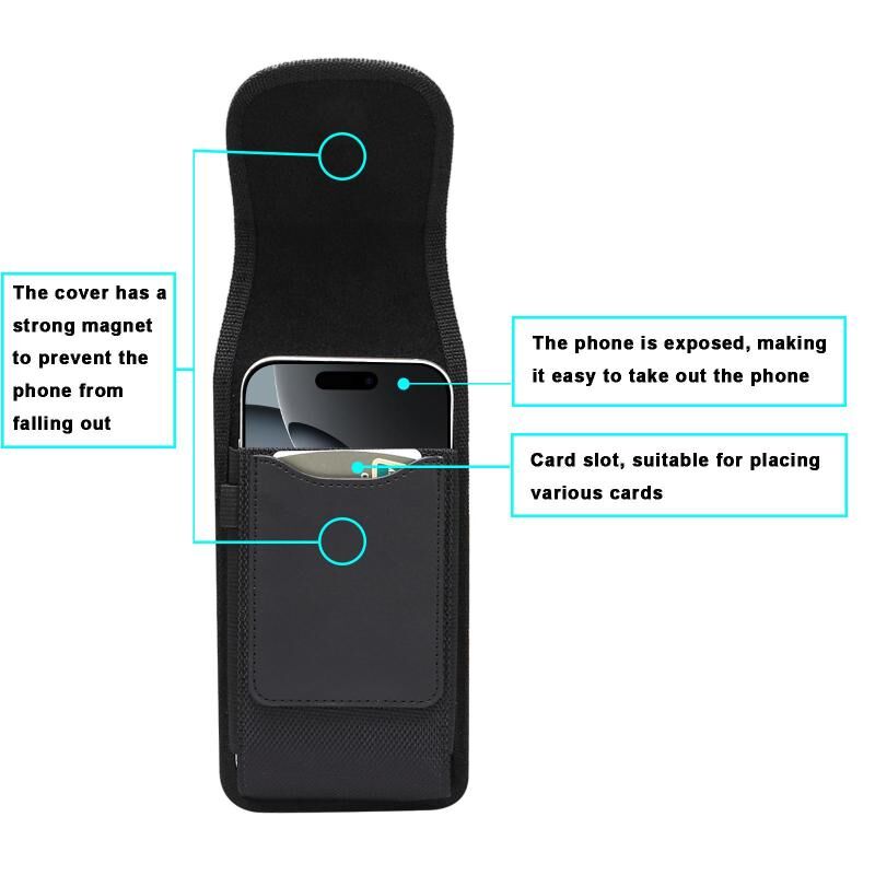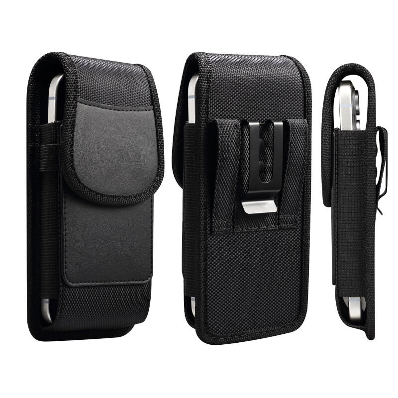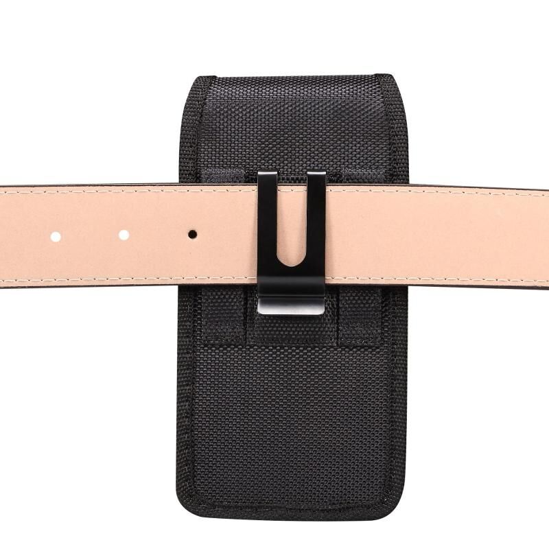 For 6.2-6.5 inch Magnetic Buckle Oxford Cloth with Card Slot Waist-mounted Phone Case(Black)